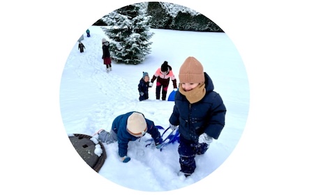 Bei uns lernen die Kinder mit allen Sinnen – und der Schnee bietet dafür eine wunderbare Gelegenheit. Das Rodeln, das Fühlen des kalten Schnees und das Sehen der glitzernden Landschaft machen den Wintertag zu einem besonderen Erlebnis. So verbinden wir Bewegung, Naturerfahrung und Freude zu einem wertvollen Lernmoment.
